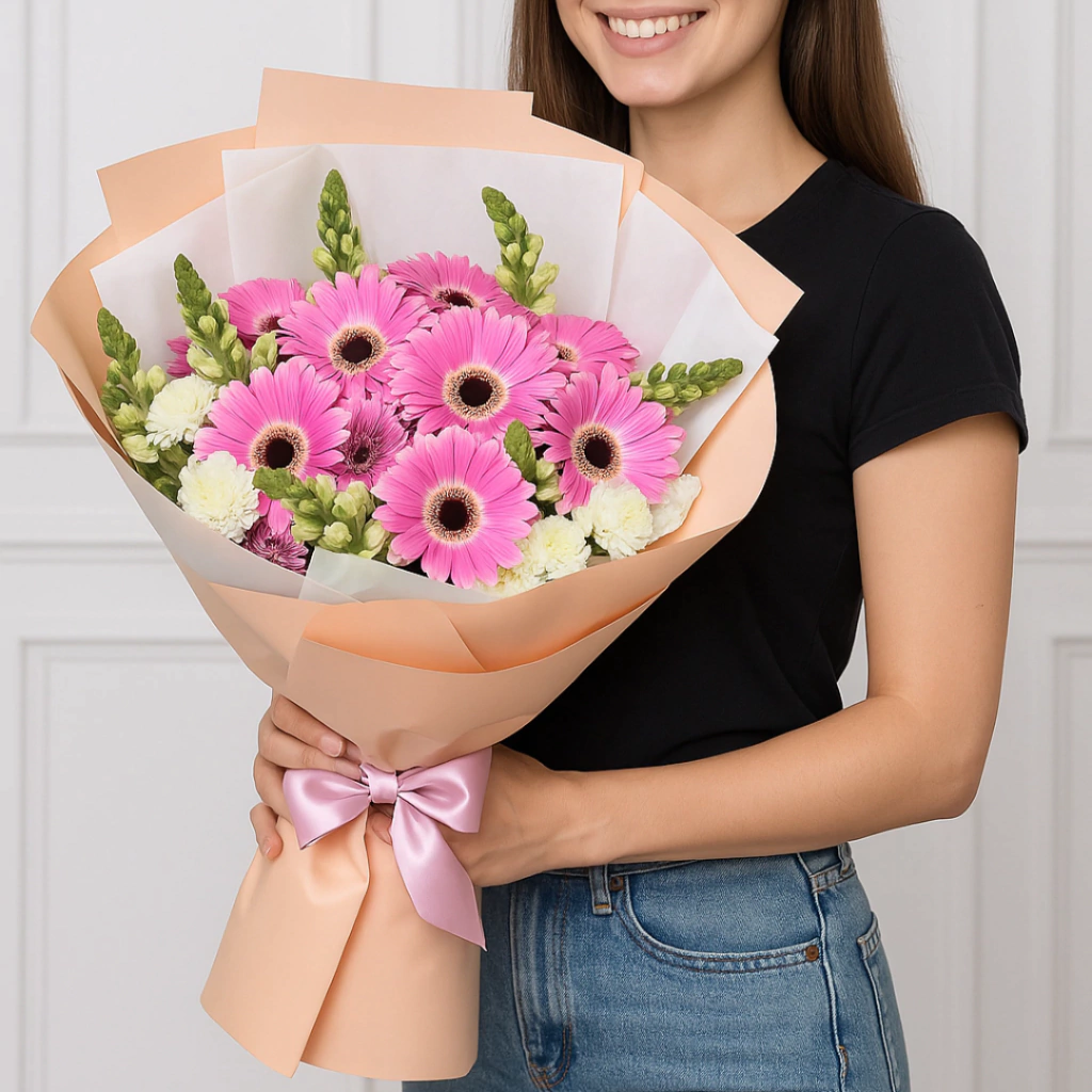 Un bouquet alegre y lleno de color, perfecto para iluminar cualquier día. Su combinación vibrante de flores frescas transmite cariño, energía y ternura con un toque elegante.